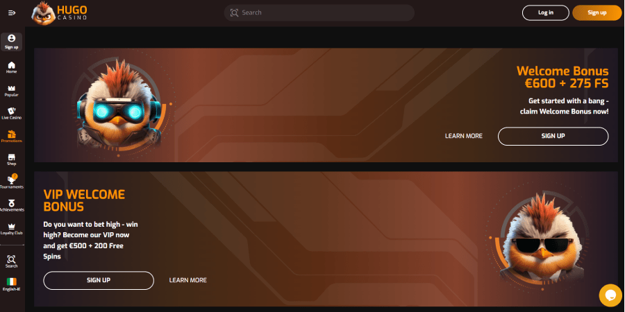 Hugo Casino is now mobile-friendly, just like all the other major online casinos. Unlike most things, this was done without sacrificing quality in the visual aspects of the user interface. The two are nearly identical; however, the mobile version may give a more favourable impression due to its diminutive size compared to the PC version.