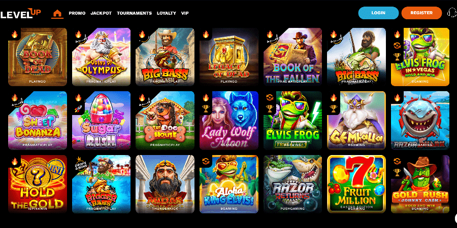 You can be sure that LevelUp Casino has a wide selection of games to choose from since they collaborate with a dozen different developers, both large and small. Slots, All Games, Trending, New, Bonus Buy, Table, and Jackpot are some of the accessible tabs. Use the search box to see whether any of the live dealer or video poker games are available. You do not need an account to play slots in practice mode. Nevertheless, your current level of progress will not be preserved when you transition to the real money mode.