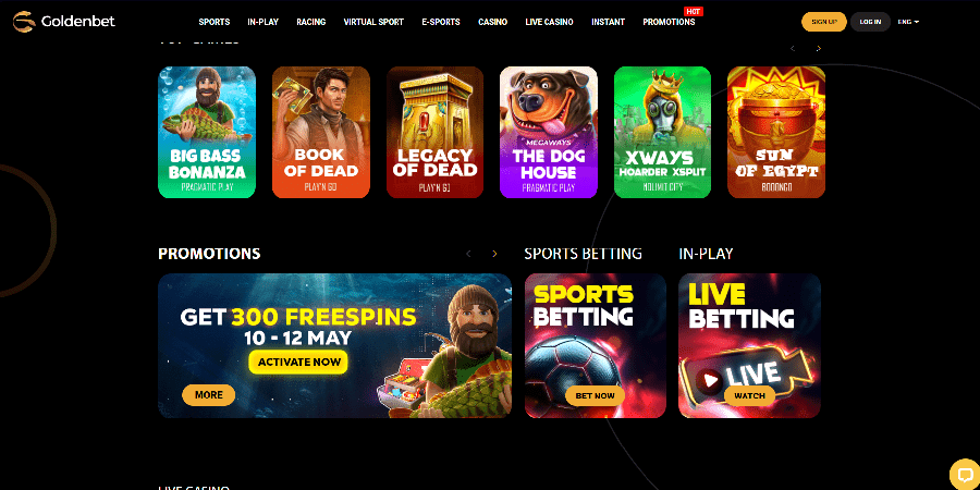 Slot games abound at GoldenBet, with titles including Zombie Carnival, Hot Life, Tropical Bonanza, Fisher King, Buffalo Toro, El Cowboy Megaways, Megahops Megaways, and countless more. The casino's game collection is diverse and extensive.