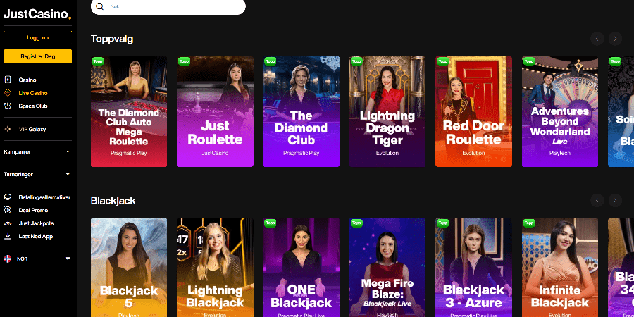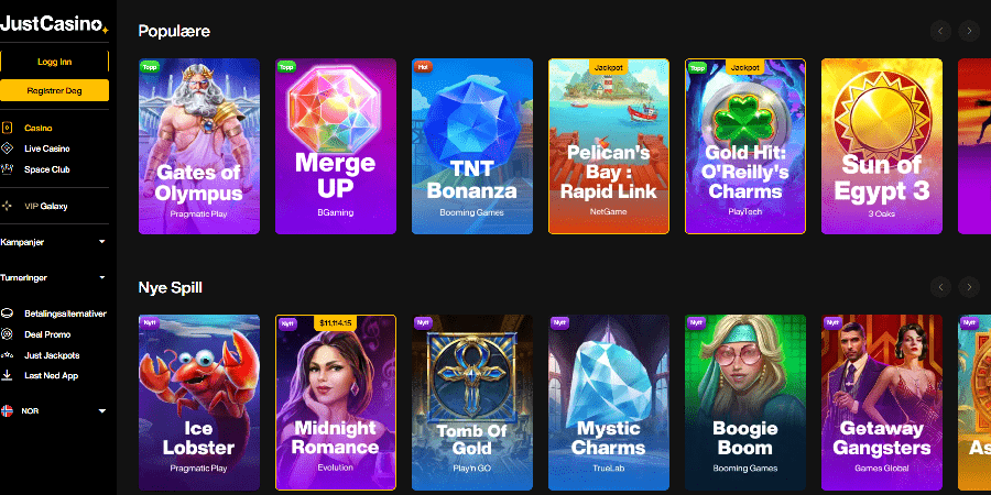 Just Casino får sin mjukvara från en rad välkända och respekterade utvecklare, inklusive BGaming, Amatic, Booming Games, Betsoft, ELK Studios, Endorphina, Netent, Play'n Go, Playson, Red Tiger Gaming och Yggdrasil.